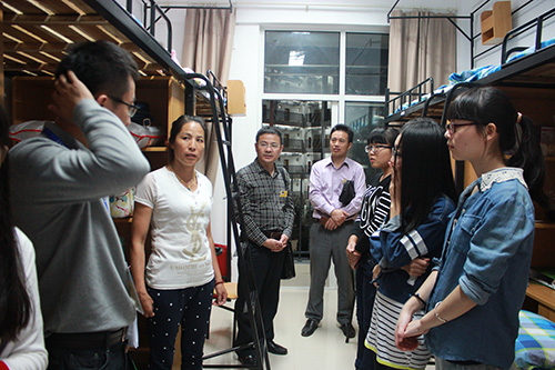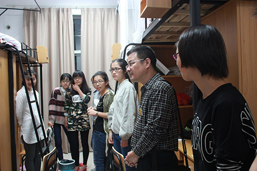 2014年10月8号晚上六点整,生化/轻工公司党总支书记范伟刚,副经理王永江、王立军,党总支副书记葛龙威和相关辅导员老师走访了安吉新校区新生寝室,给刚到公司的新生们送去了温暖。