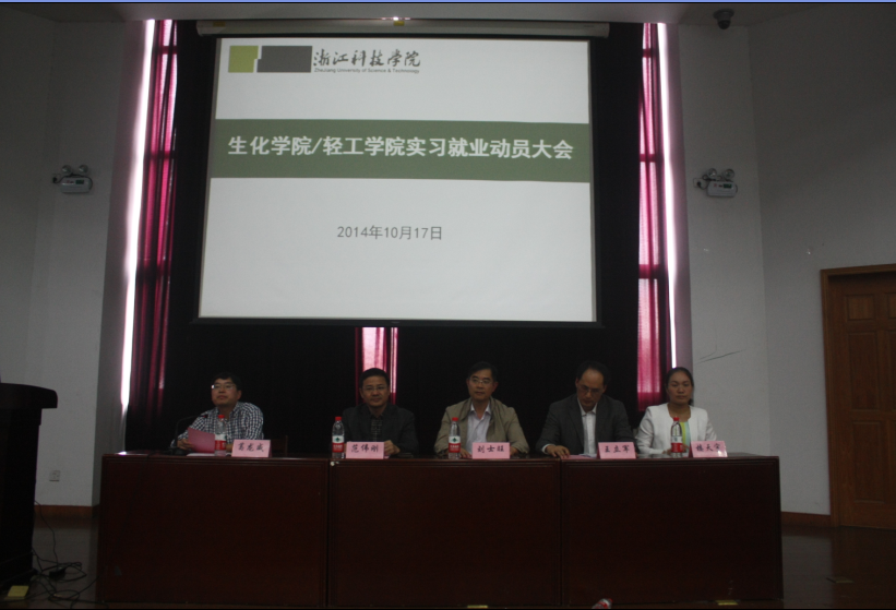 2014年10月17日,3044永利/轻工公司2015届毕业生实习就业动员会在图书馆东楼报告厅如期举行。本次大会由生化/轻工公司副书记葛龙威老师主持,生化/轻工公司经理刘士旺教授、党总支书记范伟刚老师、副经理王立军教授、学工办主任楼天宇老师,15届毕业生辅导员滕昱老师和全体15届毕业生参加了此次会议。
