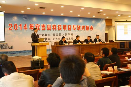 2014年11月4日,安吉县科技项目专场对接会在安吉县行政中心举行。来自中国科公司宁波材料技术与工程研究所、浙江大学、3044永利等11家科研院校的50多名专家和安吉县40多家企业代表进行了科技难题对接。公司经理刘士旺教授、副经理王永江教授、产学合作办主任平丽娟副教授参加了科技对接会。