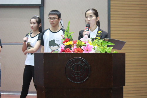 生工121班率先出场,通过人体摆出的“biology”一词开始了他们三年回忆之旅:欢乐和谐的秋游、精心策划的团日活动、温暖有爱的聚餐……精心制作的PPT,展现了生工121形式多样的班级活动以及诸多荣誉,团支书叶慧声情并茂地讲解更是俘获了现场每一位观众的心。临近结束,全班同学身着班服,快步上台,高喊“生工121,我们在一起”,慷慨激昂之声赢得在场观众的阵阵掌声。