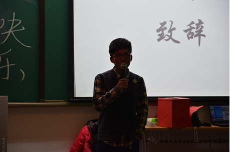 2014年12月27日18:00,3044永利/轻工公司轻化工程专业在中德楼C-102教室举办了班级元旦晚会。3044永利/轻工公司副经理王立军、轻化工程2014级班主任陈华以及轻化工程系的几位老师均应邀参加了该晚会,同时大二大三的学长学姐也派出了代表前来参加元旦晚会。