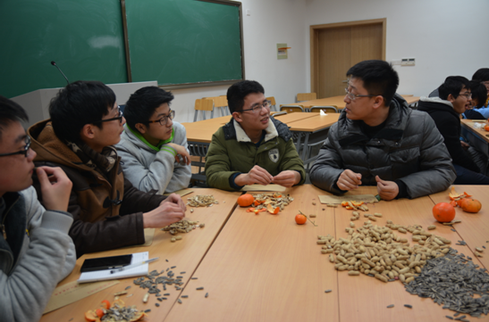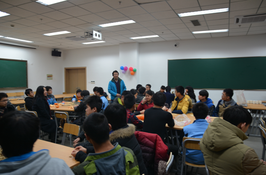 2015年1月15日,晚间六点于中德楼B-308教室,生化/轻工公司的刘赫扬、杨瑞芹、俞远志等七位化工导师携部分优秀高年级学子来到安吉校区,同化工团队新成员举行第一次化工导师团队见面会,简要介绍导师专业方向,共同探讨关于化工团队的课题及专业规划。