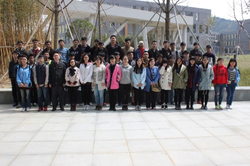 2015年3月26日星期四上午,轻化工程14级新生班主任陈华老师、2011级胡懂皓学长以及严羽欢学姐至安吉,会同辅导员范玉凤老师一起为14届轻工同学探讨老员工涯的规划。