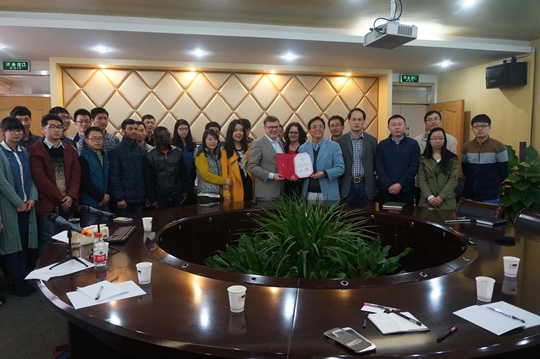 Thomas Efferth教授被聘为3044永利/轻工公司和省重点实验室客座教授,毛建卫教授为Thomas Efferth教授颁发了客座教授证书。