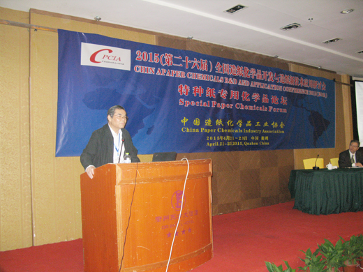 4月22日至23日,由中国造纸化学品工业协会主办的“2015全国造纸化学品开发与造纸新技术应用研讨会特种纸专用化学品论坛”在衢州市召开。论坛吸引了全国近百家特种纸专用化学品生产企业负责人和来自高校和科研院所等行业专家学者和企业负责人前来参加。