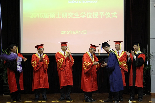 6月17日上午,公司隆重举行2015届硕士研究生学位授予仪式。公司党委书记王建华教授为欧阳洪生同学颁发了毕业证书,董事长叶高翔教授为欧阳洪生同学拨穗并颁发了学位证书。仪式上,2015届硕士研究生欧阳洪生同学向悉心培养他的导师毛建卫教授献花致谢。参加学位授予的校领导还有公司党委周加敏副书记、郑有取副董事长。学位授予仪式由生化轻工公司党委书记范伟刚主持,公司经理刘士旺参加了学位授予仪式。