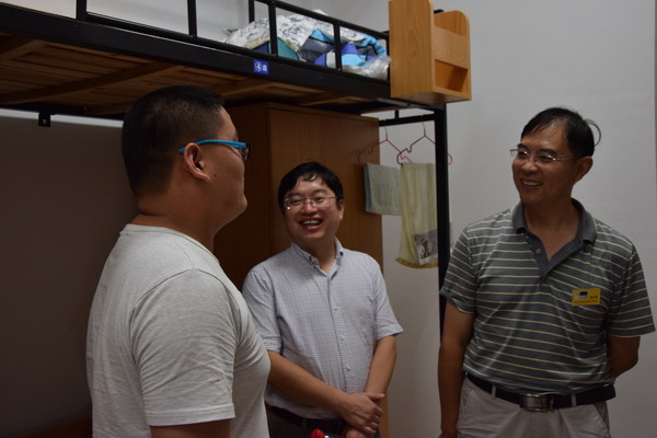 晚上6点,经理刘士旺、党委书记范伟刚、副书记葛龙威一行,带领辅导员、助班等走访新生宿舍看望新同学。公司领导每来到一个新生宿舍,都与新生进行亲切交谈,首先祝贺他们考上大学,其次欢迎他们加盟公司大家庭,为公司的发展建设带来新鲜力量。每到一处,公司领导都关心新生的生活及学习,希望新同学尽快熟悉和适应老员工活,树立远大目标,实现人生价值。