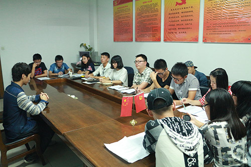 2015年9月18日晚上6点,第四届牛讯文化传媒中心换届大会在C2-653正式举行,指导老师何俊杰、社长李睿、社长助理姜有鱼、前副社何英洛以及多位部长担任面试主考官。