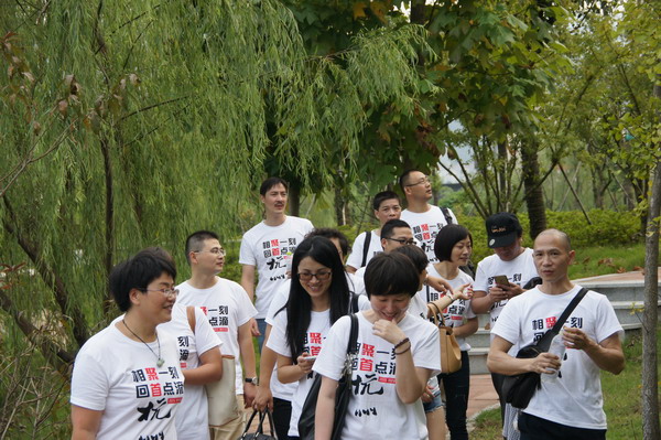 上午十点,员工们带着各自家乡的特产从各地来到母校小和山校区,相聚校湖心亭茶楼,共同分享属于他们自己的喜悦,谈论着属于他们自己的那段岁月,每个人脸上都绽放着青春,与当年员工时代一样,大家还特地穿上他们自己设计自己印制的聚会班服,远远地亮出一个“印”字,胸口还点上了“聚首”,气氛十分热闹。