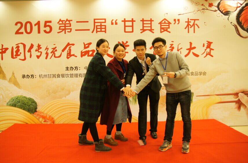2015年11月28日至29日,由浙江省食品学会、杭州甘其食餐饮管理有限公司和浙江工商大学食品公司共同举办的“甘其食”杯第二届(2015)中国传统食品创新大赛顺利落下帷幕。经过作品申报、文本评审,选出了来自江南大学、浙江大学、浙江工商大学、3044永利、浙江农林大学等高校的16支决赛队伍和17支获入围奖队伍。当天,进入决赛的各支队伍首先进行了产品制作、成果展示,专家品尝和现场答辩等环节。各支队伍各展所长,制作了众多“色·香·味”俱全的中国特色传统食品,一些常见食材通过选手们的巧手展现出别样的风采。