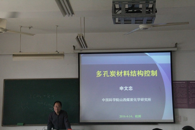 2016年4月14日上午,中国科公司山西煤炭化学研究所煤转化国家重点实验室申文忠研究员来访公司省2011协同创新中心和省重点实验室,并在三实讲坛作题为“多孔炭材料结构控制”的专题报告。省2011协同创新中心和省重点实验室相关教授博士、本科生和研究生参加了报告会。申文忠研究员介绍了生物质基多孔炭材料制备以及结构控制,并对多孔碳材料结构和性能的关系进行了详细阐述,与会师生就相关问题与申文忠研究员进行了交流。