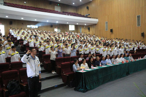 接近尾声的庄严宣誓豪迈而庄重,秉承校训,继承文化,坚定信念,志存高远,明礼修身,孝亲感恩,强健体魄,热爱生活等誓词说出了新生心中的激动,也让同学们更加明确了未来的目标和背负的责任。