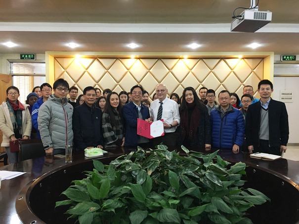 11月28日,来自法国René Descartes University的Galons教授一行来访校省2011协同创新中心学术交流,公司党委委员、省2011协同创新中心主任毛建卫教授陪同考察省农产品化学与生物加工技术重点实验室,并在“三实”讲坛省2011协同创新系列作题为“Proteomics studies as a guide in the discovery of Cyclin -Dependent Kinase Inhibitors”的报告,毛建卫教授主持,公司省2011协同创新中心副主任、生化/轻工经理副经理杨瑞芹教授,省2011协同创新中心办公室主任姚刚和一批教授、博士、研究生参加了本次论坛。