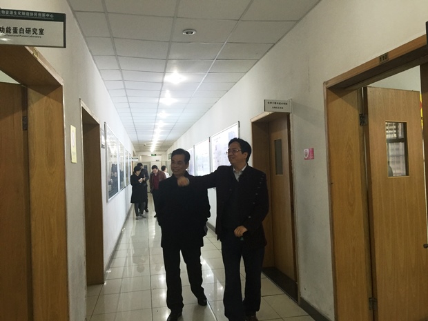 12月6日,省饮料工业协会负责人王顺成一行来访公司省农业生物资源生化制造协同创新中心,公司党委委员、省2011协同创新中心主任毛建卫教授,中心办公室主任姚刚老师等陪同考察了省农产品化学与生物加工技术重点实验室,双方进行了合作交流。