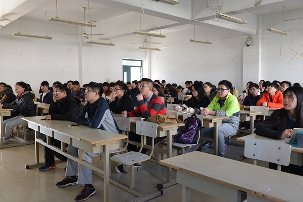 讲座现场座无虚席,陈曲老师结合当前四六级的考试现状,就答题顺序、题型分析、备考模块等多个方面进行了讲述,不仅让同学掌握了英语四六级冲刺阶段的方法,更增强了在场同学的信心。陈老师幽默风趣的语言赢得了在场同学的热烈掌声。