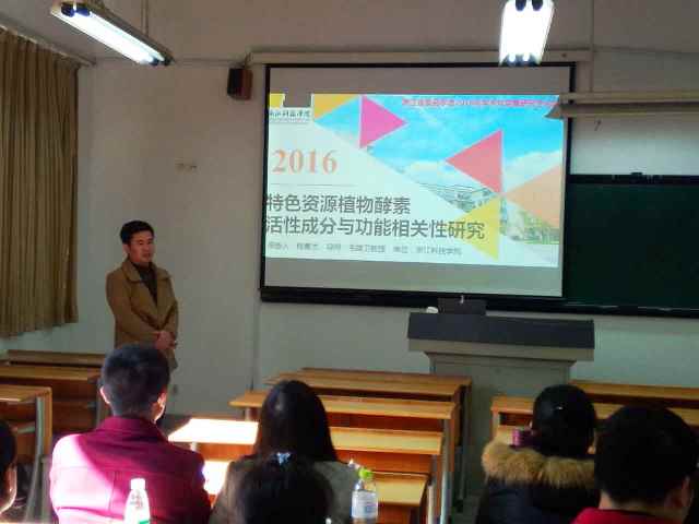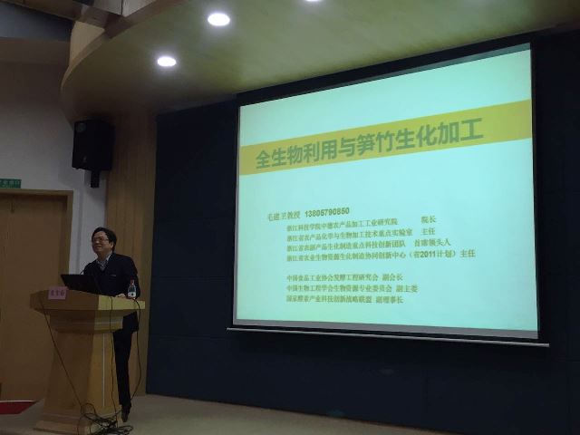 公司党委委员、省农业生物资源生化制造协同创新中心主任、省食品学会副理事长毛建卫教授在大会作“竹源食品加工与全生物利用”主题学术报告,沙如意博士主持了研究生分论坛,肖竹钱老师在“现代食品加工与安全”分论坛作了“生物炼制法制备低碳多元醇的研究”的报告,公司研究生王珍珍、程勇杰在研究生论坛上分别作了“食品植物酵素中耐高渗酵母菌的分离鉴定及生长特性研究”和“特色资源植物酵素活性成分与功能相关性研究”的报告,生化/轻工公司一批教授、博士和研究生参会。