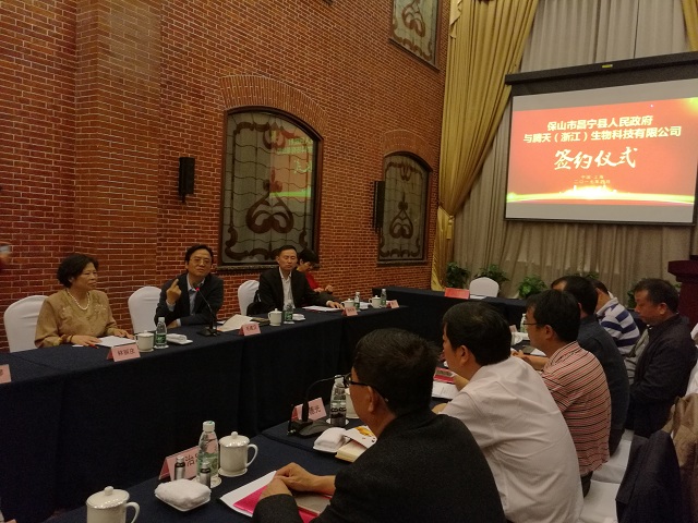 云南保山市委书记赵德光、副市长赵碧原率所属各区、县负责人参加了签约会,公司党委委员、浙江省农业生物资源协同创新中心毛建卫教授一行,台湾企业家、腾天生物科技董事长林女士一行等参加了签约会。毛建卫教授代表协同创新中心和企业方、保山市委赵书记代表地方政府分别作了发言,并见证了双方的签约仪式。该项目利用云南保山地区特有的生态作物为原料生产生物酵素产品。