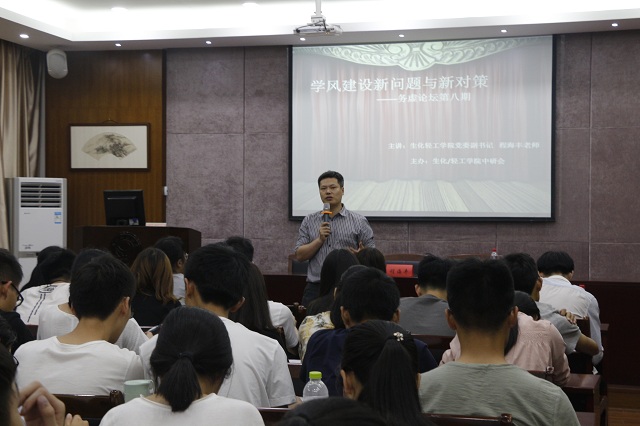 5月22日晚,生化/轻工公司中国特色社会主义理论体系研究会第八期“务虚论坛”在C2-530召开。生化轻工公司党委副书记程海丰应邀出席本次论坛,与公司2015级各支部党员和积极分子畅谈学风建设话题。