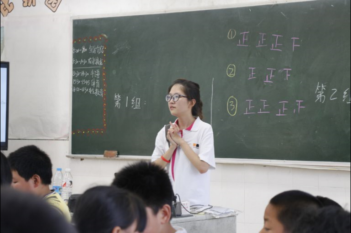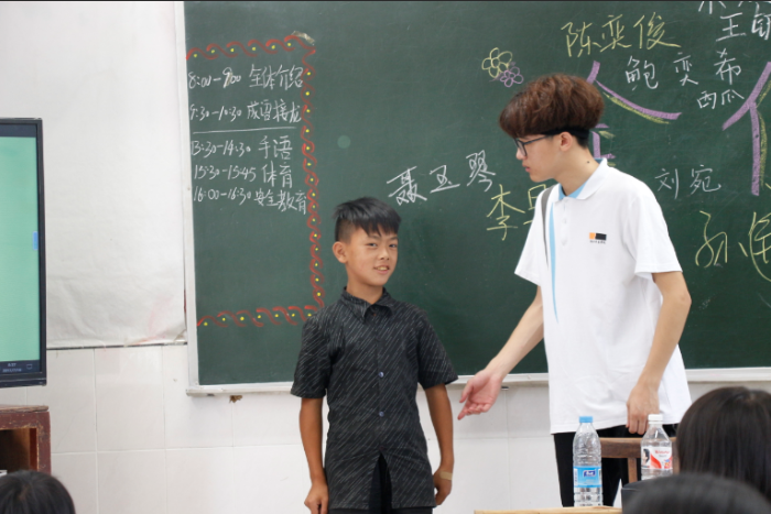 曼妙的歌声回荡在教室内,支教队员与同学们不仅位置的距离在缩减,心灵的距离更是大大缩减,慢慢紧靠。一泓清泉流过,诉说温暖如昨……