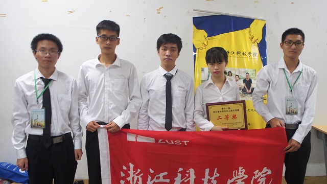 本次竞赛的题目:对某一含硫工业废气源设计一整套深度脱硫并予以资源化利用的工艺及装置。化学工程与工艺14级沈宇健、孙律、何金瑶、梁鹏和杨黎辉等五位同学组成的56团队,在李音、刘赫扬、郭小青和刘宝鉴四位老师的联合指导下,经过4个月的努力,完成了“山东济矿民生煤化有限公司16亿立方米/年燃煤尾气深度脱硫及资源化利用项目”。项目的可行性论证、工艺流程设计、设备选型及典型设备设计、车间设备布置设计、工厂总体布置设计、经济分析与评价、设计说明书编制等受到评委一致好评,进入了第十一届浙江省老员工化工设计竞赛决赛。决赛阶段,56团队通过出色的PPT展示答辩获得专业评委的肯定,获得浙江省二等奖,再为公司在添彩。