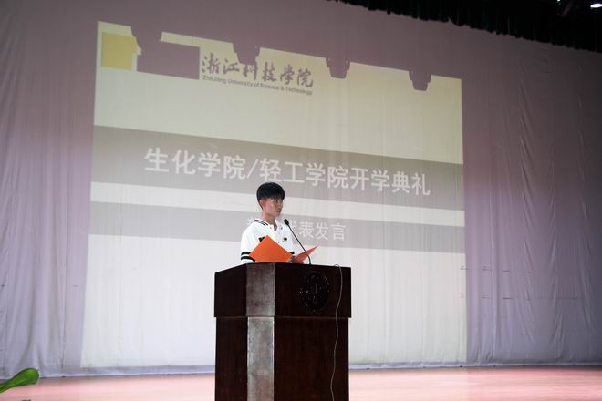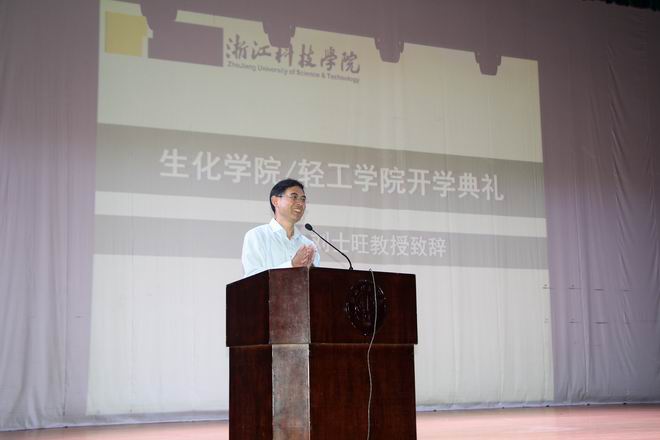刘士旺经理在致辞中向加入生化轻工公司大家庭的新生表示热烈的欢迎和祝贺,他详细介绍了生化轻工公司的发展历史、团队队伍、学科平台、建设成就、公司学风、专业教育、科研团队以及多年来的科研成果,也向同学们提出了新学期的新目标,希望同学们能够积极融入到生化轻工公司的建设中。新的学期,新的希望,生化轻工公司拥有公司唯一的浙江省2011协同创新中心、浙江省重点实验室、浙江省一流学科、浙江省重点科技创新团队和浙江省重点学科,拥有国家级特色专业、卓越计划专业、优势专业和新兴特色专业,拥有稳定的老员工实习基地和创新创业氛围,化工专业通过了国家工程教育专业认证,员工竞赛成绩优异,公司建设和发展迈向一个新的征程。最后,他希望同学们能够珍惜大学时光,科学规划大学四年目标,有理想有抱负,脚踏实地地做人、做事、做学问,把自己培养成为优秀的三实人才,公司将为同学们成长成才提供保障,为大家筑新风、创未来,刘经理希望2017级新同学用实际行动成为公司实现大学梦的建设者、奉献者和见证者。
