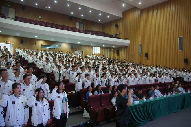 接近尾声的庄严宣誓豪迈而庄重,秉承校训,继承文化,坚定信念,志存高远,明礼修身,孝亲感恩,强健体魄,热爱生活等誓词说出了新生心中的激动,也让同学们更加明确了未来的目标和背负的责任。