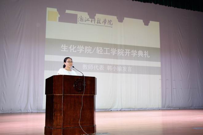 教师代表韩小瑜老师随后发言,她提出大学是人生的新起点,是人生中最美好的时光。她围绕“把握时间”以及“珍惜老员工活”两个重点,希望同学们能够抓紧大学短暂的时光,尽快适应并丰富老员工活,要充分意识到学习的重要性,有理想,有目标,多方面培养自身能力,成为社会有用人才。