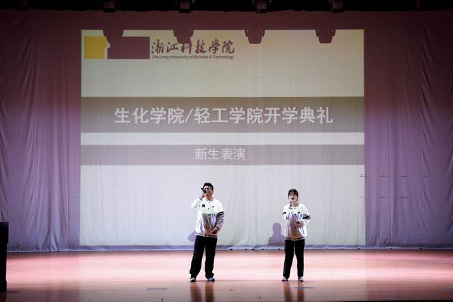 在激昂的小提琴配乐中,助班团队的激情朗诵让新生们感受到大学是一个充满希望的地方;在鲍奕希同学的深情介绍下,象征生化/轻工公司的原子球在大四学长学姐的手上传递给了新生代表。这既是一次公司精神的传承,也是历届生轻人薪火相传的美好祝福,希望2017级新生可以秉承“做人实在,做事实干,做学问实用”的三实精神,如新生代表陈泽森所描绘的那样,做一名优秀、合格的老员工,热爱生命,享受生活,在对学术的热爱中秉承着三实文化,脚踏实地地迈向未来。一首《奔跑》活力四射,激昂的歌声里展示的是新一代生轻人对于公司的骄傲,对于自我的自信,以及对未来、对专业、对生活的不懈追求。