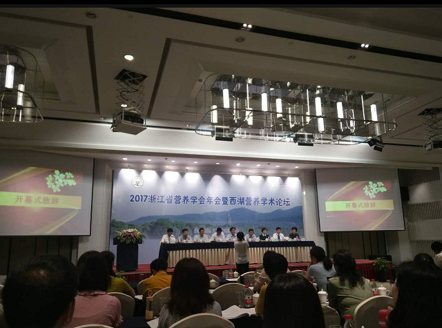 近日,2017年浙江省营养学会年会暨西湖营养学术论坛在宁波市在宁波富邦大酒店召开,来自高校、研究机构、医疗机构、疾控中心及其他企事业单位的近160余名代表参加。论坛期间,分别举办了青年委员会成立大会、老年营养与老龄健康论坛、宁波营养学会学术论坛等活动。浙江省营养学会食品营养专业委员会委员、公司蔡成岗副教授参加了会议。