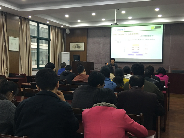 吴元锋教授首先向老师们通报了本次校内专业认证中专家反馈的一些意见和建议,然后由王永江副经理从工程教育专业论证理念、论证标准及标准的落实等三个方面阐述OBE培养方案的顶层设计及持续改进的专业质量建设的做法,并结合本次校内专业认证中的问题就如何进行专业建设作了重点分析。最后,王永江副经理指出,生工和食品专业已经申请了2018年工程教育专业认证,接下来需要准备自评报告撰写和支持条件等建设,望老师们全部要行动起来,人人都要把握好专业认证理念,吃透标准,全心协力为专业的发展贡献自己的一份力。