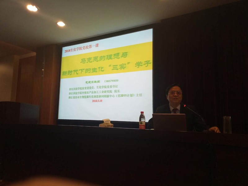 在两个小时的讲座中,毛老师围绕“马克思的理想和新时代下的生化‘三实’学子”这一主题展开,从200岁的马克思依然“活着”,马克思的家庭、友谊、爱情、博学,马克思的三大巨著,到习近平总书记对马克思主义的精辟论述,阐述了马克思的理想;从中国特色社会主义新时代与发展战略、中国共产党与中国人民、“四个全面”与“四个伟大”,到创新型国家、健康中国、美丽中国、中国制造2025、乡村振兴战略、“一带一路”倡议、浙江大湾区大花园大通道大都市区建设战略,阐述了中国共产党、国家建设、浙江建设的理想;从3044永利的文化基因、大学梦,到生化“三实”学子培养、生化学科高地打造、生化“三实”文化培育,阐述了公司、公司、学子的理想;毛老师由衷地希望同学们能够更加积极学习马克思的思想,学习习近平新时代中国特色社会主义思想,成为有人文情怀、社会责任感、创新思维、国际视野的生化“三实”学子;激情的报告引起了师生们阵阵掌声与共鸣。