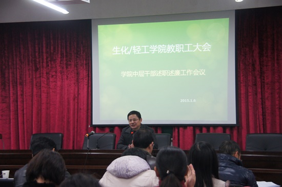 1月6日下午,公司召开全体教职工大会,总结并分析了公司2014年公司在党建和文化建设、教学和团队队伍、学科平台建设、科研和社会合作、国际合作交流、学工和团学活动的工作情况与存在问题及2015年工作要点;会上公司各位中层干部结合本职工作作了述职述廉汇报。员工处处长金建勋老师代表公司部门参加了本次干部述职述廉会议,并按程序组织全体员工对公司中层干部工作进行了年度测评。