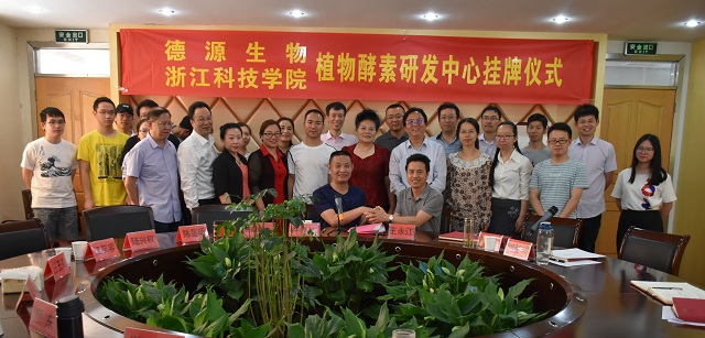 2018年6月6日,2018酵素产业发展研讨会暨产学合作酵素研发中心成立仪式在公司浙江省农产品化学与生物加工技术重点实验室举行。 毛建卫教授、经理王永江教授及一批教授、博士、研究生和德源生物科技有限公司负责人、行业专家等参加了会议,副经理刘赫扬博士主持会议,媒体支持CCTV-7《农广天地》栏目。