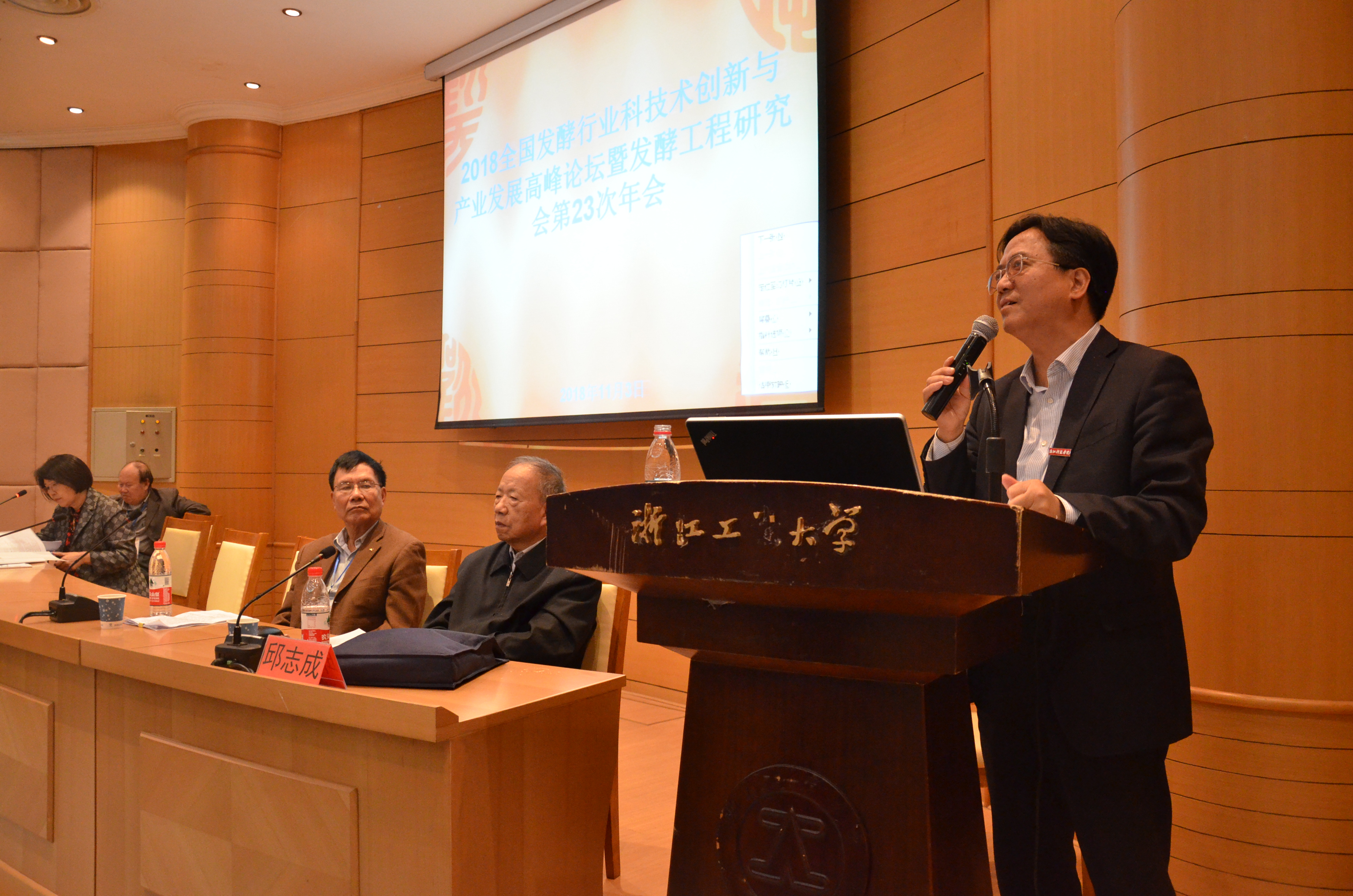 11月1日-3日,中国食品工业协会发酵工程研究会、浙工大、浙科院主办的"2018全国发酵行业高峰论坛暨发酵工程研究会第23次年会"在杭州举办。浙江工业老员工物工程公司经理、中国工程院院士郑裕国教授出席论坛并作讲话,公司党委委员、中国食品工业协会发酵工程研究会副会长毛建卫教授作题为“中国食品工业与生物发酵制造”首场主题报告,并主持了第一天上午论坛。