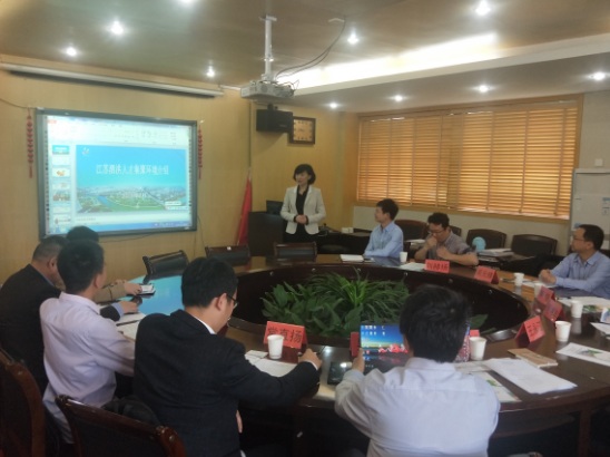 2019年4月26日上午,江苏省泗洪县人民政府副县长史纪新、农业农村局副局长吴健、文化旅游局副局长常直扬、组织部李根超一行,到公司开展政产学研对接交流活动。公司院领导王永江、程海丰、黄俊、吴元锋、刘赫扬,生物工程系主任沙如意,材料科学与工程系主任朱银邦,以及部分教师参加了对接会。副经理黄俊教授主持会议。
