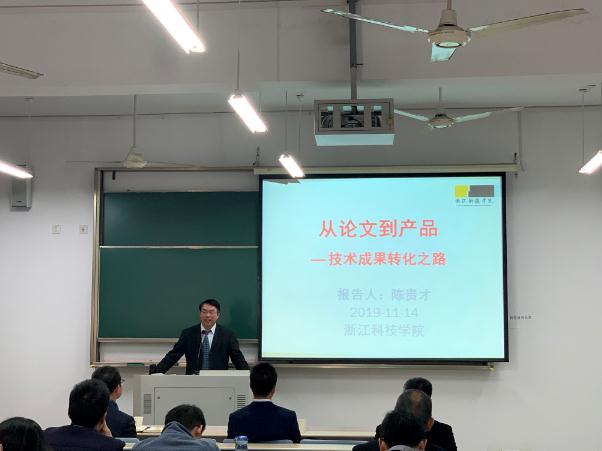 国家级人才陈贵才教授,为全院教师作“从论文到产品—技术成果转化之路”专题报告。(新闻办 范玉凤)