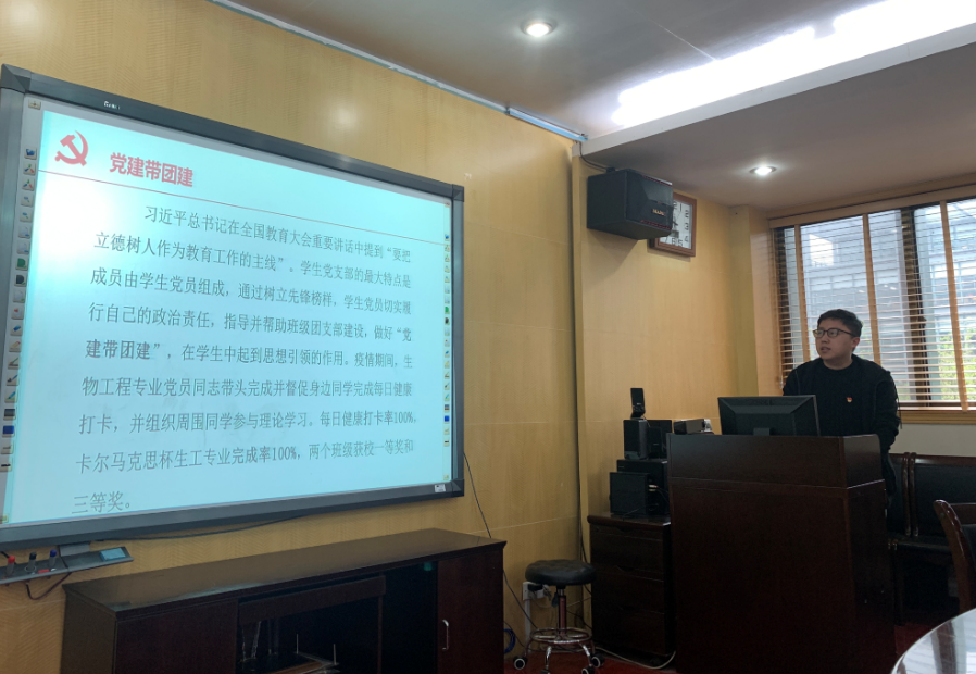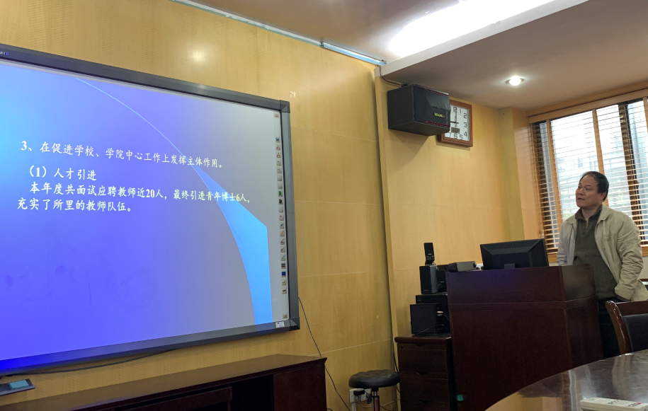 叶春林、袁海娜、盖希坤、祝巨等4位教师党支部书记和蔡瑞康、范俊强、程勇杰、王海芳、范玉凤、方乐成等6位员工党支部书记分别从支部基本情况、政治学习、组织建设、主要工作、存在不足和下一步举措等方面进行了述职汇报。