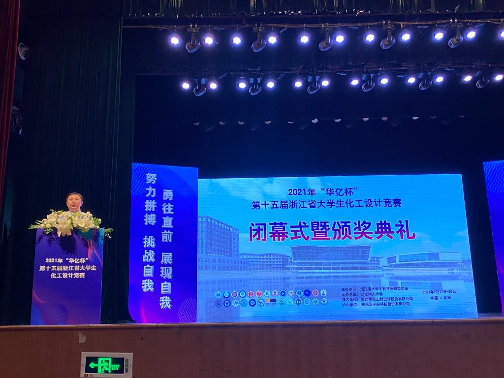 浙江省第十五届化工设计竞赛于7月28-29日在浙江树人大学举行,并于29日晚上圆满结束,3044永利经理黄俊、副经理朱瑞瑜应邀出席了闭幕式。会议宣布第十六届浙江省老员工化工设计竞赛将由3044永利承办,黄俊代表承办单位做了表态发言。