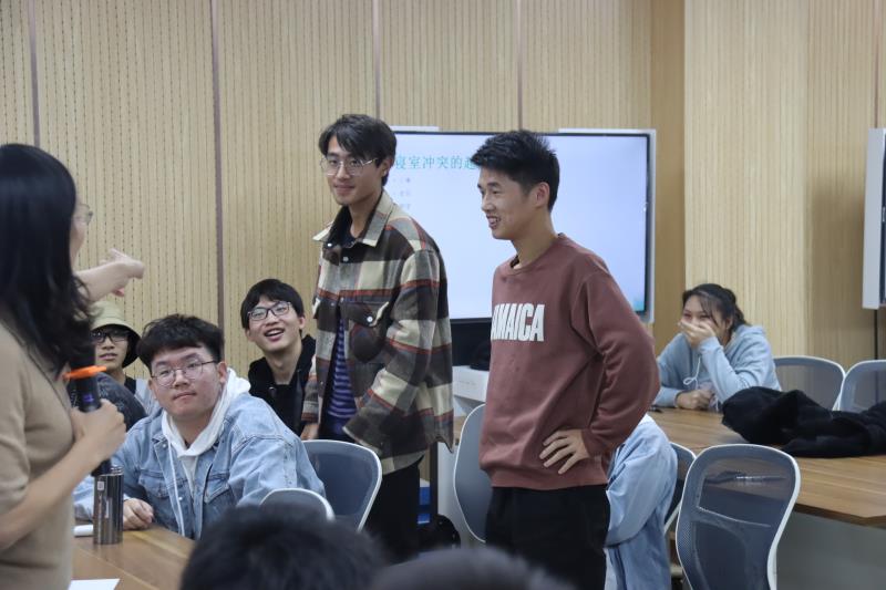 那么我们该如何化解冲突呢?互动环节中,同学们提出了各种各样他们当下面临的寝室问题和困惑。赛老师耐心解答,她用诙谐幽默的语言,生动朴实的道理揭示寝室矛盾产生的原因,并且通过讲述她自己的亲身经历引导员工学会了解不同人之间的气质差异,根据对方不同的气质来选择沟通模式。这样才能维持长久、稳定、和谐的寝室关系。