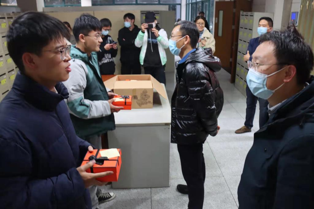 黄俊、路胜利、王学宏先后到访了省重点实验室考研复习室和图书馆考研教室,为每位考研学子送上个人专属礼品,并交流了复习状态和准备情况。黄俊祝福每位学子在努力备考后取得优异的成绩,路胜利在了解每位员工志愿公司与专业的同时提醒大家在备考的最后阶段也要注意身体状态。