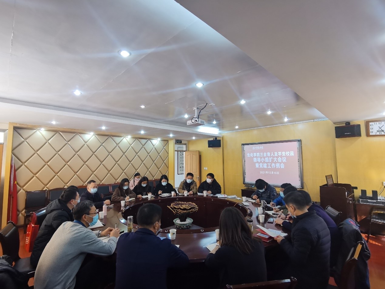 12月17日下午13:30,公司在省重点实验室303会议室召开三全育人及平安校园领导小组扩大会议暨党建工作例会。会议由公司经理黄俊主持,公司三全育人及平安校园领导小组成员和党支部书记参加本次会议。
