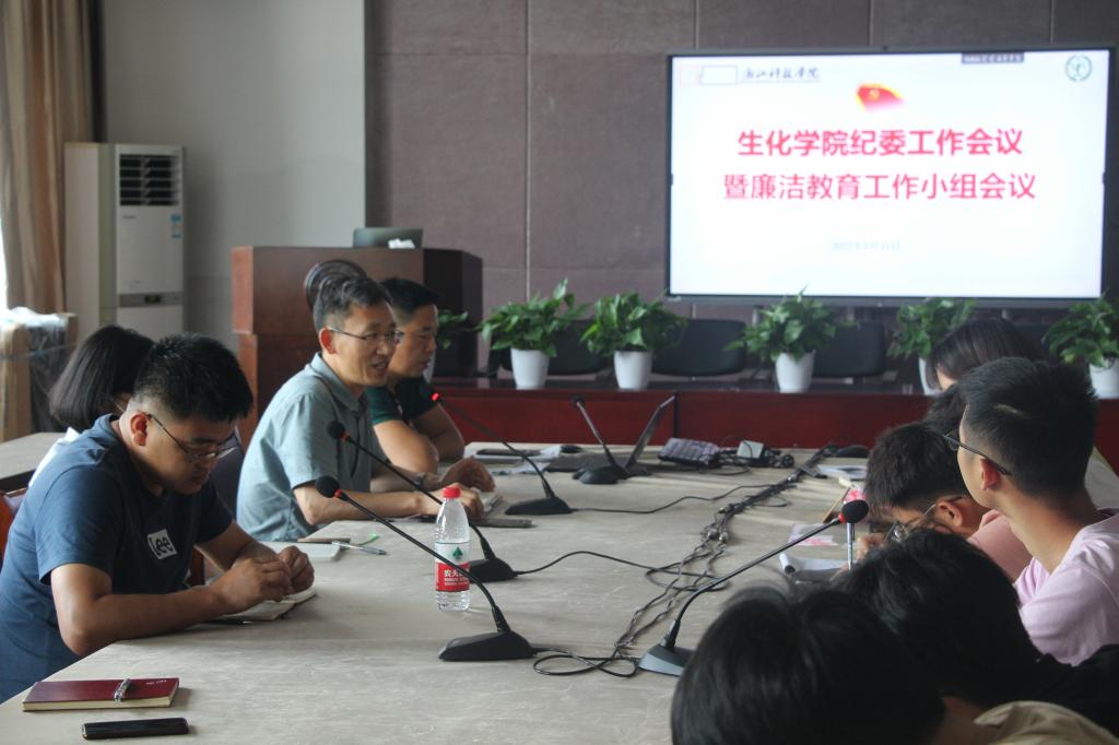 为全面加强“清廉生化”建设的组织领导,深入推进“三实三清”清廉文化品牌建设,全力营造风清气正的育人氛围,会上发布了公司党委《关于成立廉洁教育工作领导小组的通知》。王学宏作了关于《回望百年奋斗史、勇于践行新使命》的专题党课,回顾了纪检发展历程,讲述了党史上的反腐故事,并对公司2022年教风学风院风“三实三清·清廉生化”建设行动方案的推进情况进行了阶段性总结,并对下一步工作进行总体安排。