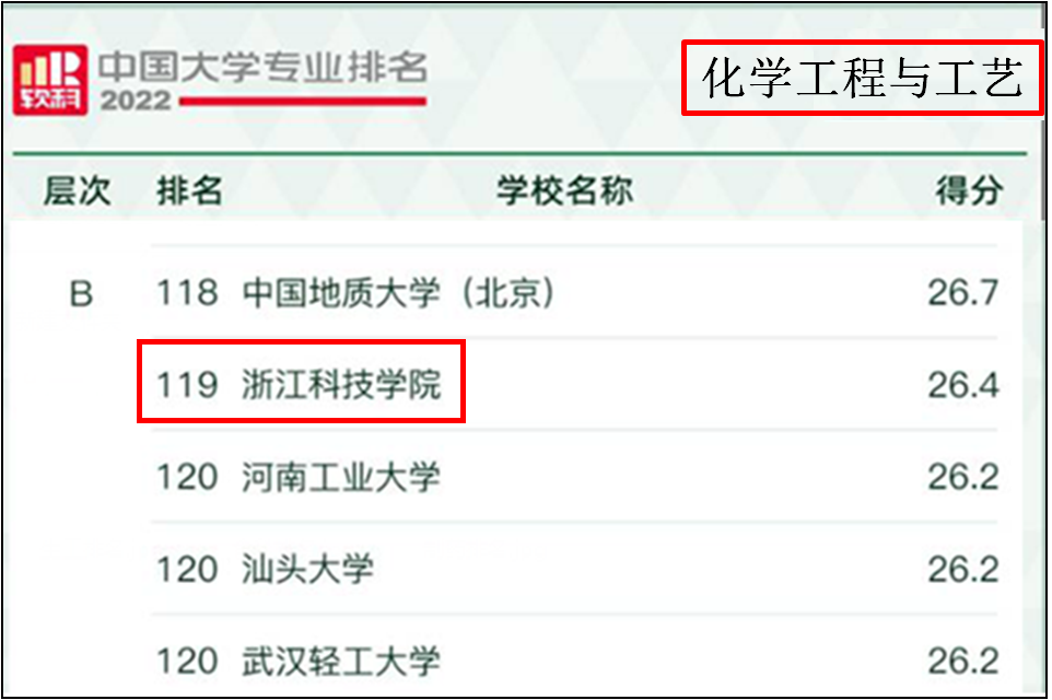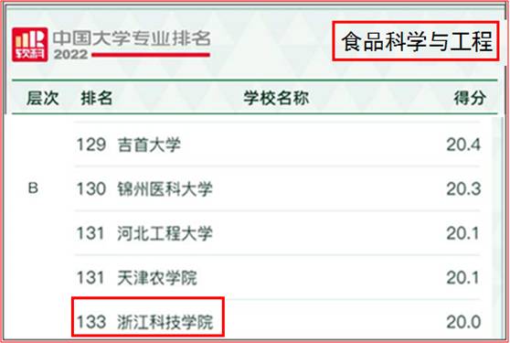 2022年6月18日,高等教育专业评价机构软科发布2022“软科中国大学专业排名”。公司化学工程与工艺、生物工程、食品科学与工程及制药工程4个专业进入本次排名的B档,其中化学工程与工艺专业在省内继浙江大学、浙江工业大学、诺丁汉大学之后位列第4,生物工程专业排名第63位,制药工程专业首次进入B档。这标志着着公司专业建设水平有了新突破,迈上了新台阶。