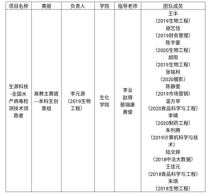项目聚焦水产病毒精准检测,团队组建于2019年10月,依托浙江省重点实验室和重点科技创新团队,自主研发水产病毒快检产品,包括检测试剂盒和配套仪器。该项目由李业、赵倩、蔡瑞康和黄俊老师指导,成员由李元源、王丰、胡艺恬、陈宇菱等13名不同学科背景的同学组成。项目团队凭借先进的技术、广阔的前景及精彩的答辩,在众多参赛项目中脱颖而出,获得全省金奖。