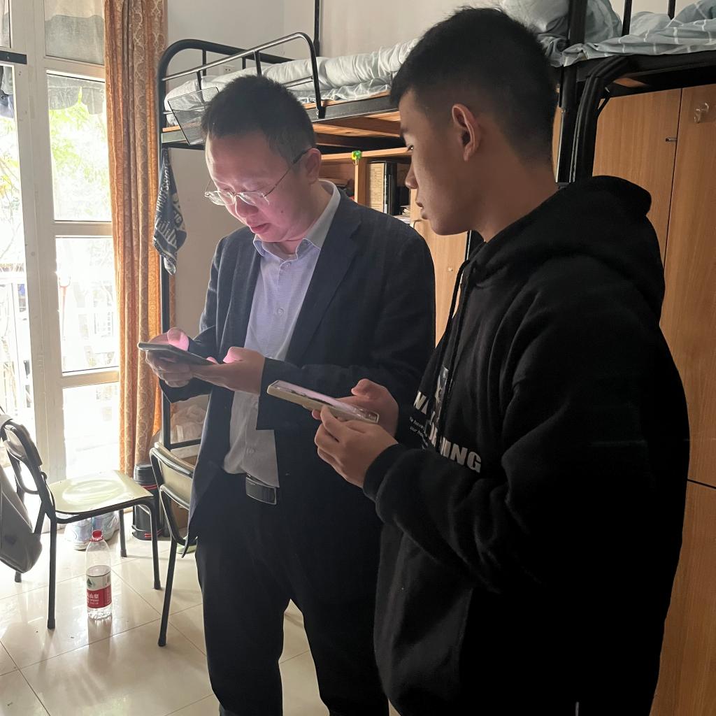 公司党委委员、副经理吴元锋走访了杨坚同学寝室,副经理朱瑞瑜走访了黄春莹同学寝室,党委副书记、纪委书记王学宏走访了纪川同学寝室。