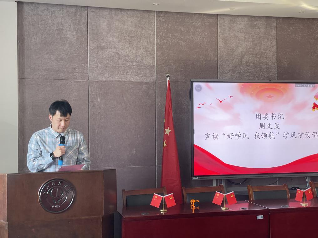 团委书记周文晟宣读了“好学风、我领航”学风建设倡议书, 并告诫在座的员工党员同志要严于律己、以身作则。