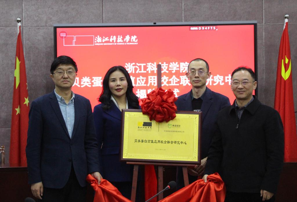 公司党委副书记冯军与顾世东副局长等为“贝类蛋白高值应用校企联合研究中心”揭牌。
