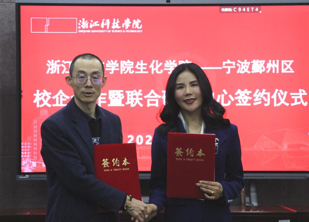 冯军对鄞州科技局及美成生物科技公司相关领导的到来表示热烈欢迎。他指出,前期公司已与鄞州区有了良好的合作基础,希望以此次联合研究中心签约为契机,继续加强校地合作,通过科研合作、人才培育及教育实践等更好服务地方产业行业发展,为浙江省“两个先行”贡献一份浙科力量。