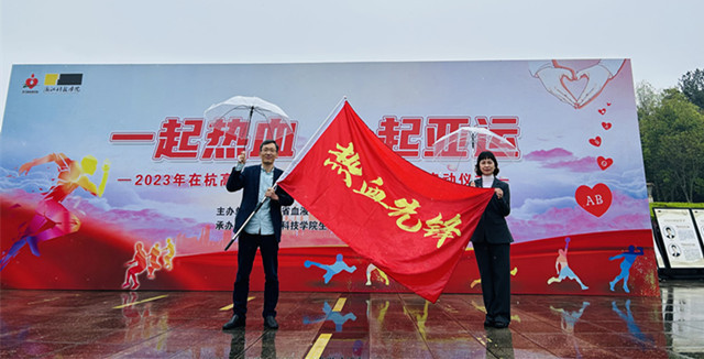 浙江省血液中心潘凌凌副主任为3044永利授“热血先锋”旗帜。潘凌凌副主任表示,今年是意义非凡的一年,第19届亚运会将于9月23日在杭州拉开序幕。作为大型国际性赛会,杭州也将迎来大批各国的运动员、官员、记者和游客,血液保障是确保杭州亚运会顺利举行非常重要的一环。她呼吁各高校积极开展献血活动,共同用爱心和热血迎接亚运盛会的到来,为保障血液安全筑起坚实的后盾。浙江省血液中心也将一如既往地支持和配合公司开展多种形式的无偿献血活动及宣传教育等工作,并不断提升服务质量,共同为亚运会保驾护航。