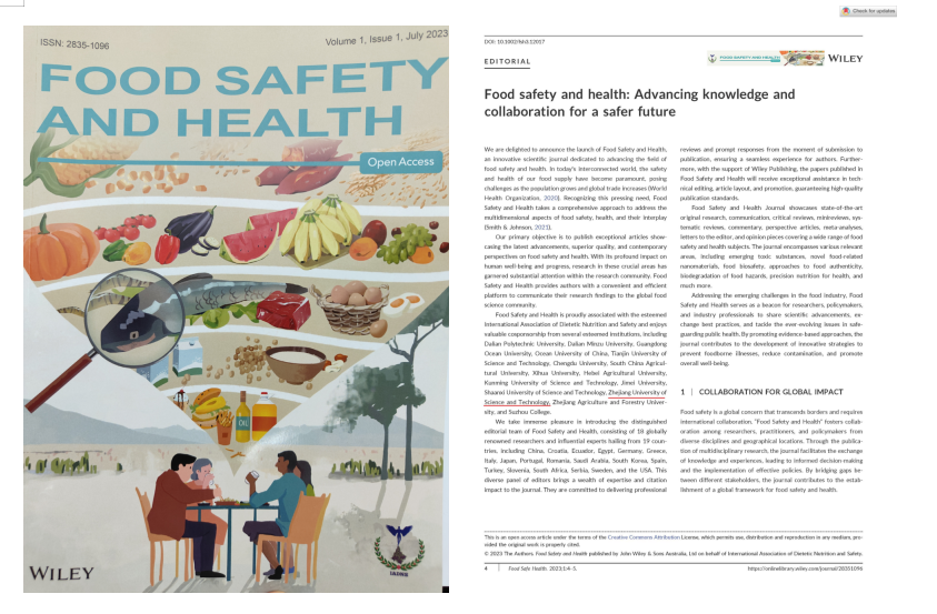 近日,由公司和大连工业大学等12个单位共同创办,Wiley出版集团出版的新晋食品英文期刊Food Safety and Health(FSH)第1期正式上线。本期包含2篇社评、4篇综述型文章、2篇研究型文章和4篇评注型文章,全部论文均为开放获取。